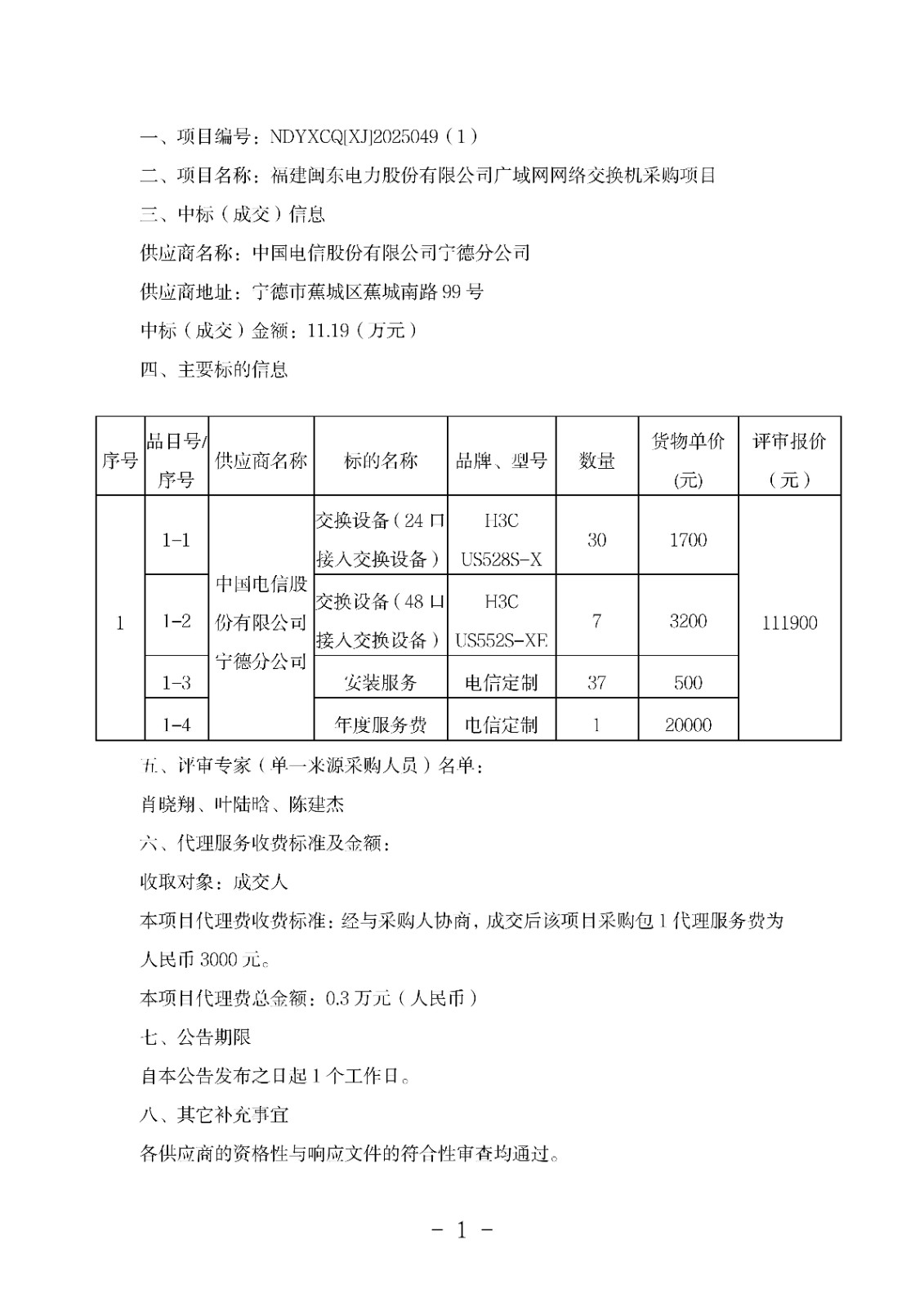 福建閩東電力股份有限公司關(guān)于福建閩東電力股份有限公司廣域網(wǎng)網(wǎng)絡(luò)交換機(jī)采購項(xiàng)目詢價(jià)采購成交公告